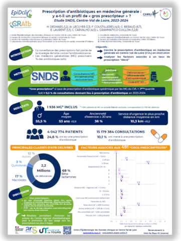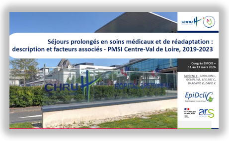 Evenements 11 Mar. 2026 > 13 Mar. 2025 Congrès EMOIS mars 2026 Publié le 9/03/2026 Congrès EMOIS mars 2025 Participation de EpiDcliC au congrès EMOIS 2026 à Saint-Malo Prescription d'antibiotiques en médecine générale : y a-t-il un profil de "gros prescripteur" ? Données SNDS, Centre-Val de Loire, 2023-2024 Séjours prolongés en SMR en région Centre Val de Loire Données PMSI SMR, Centre Val de Loire, 2019-2023